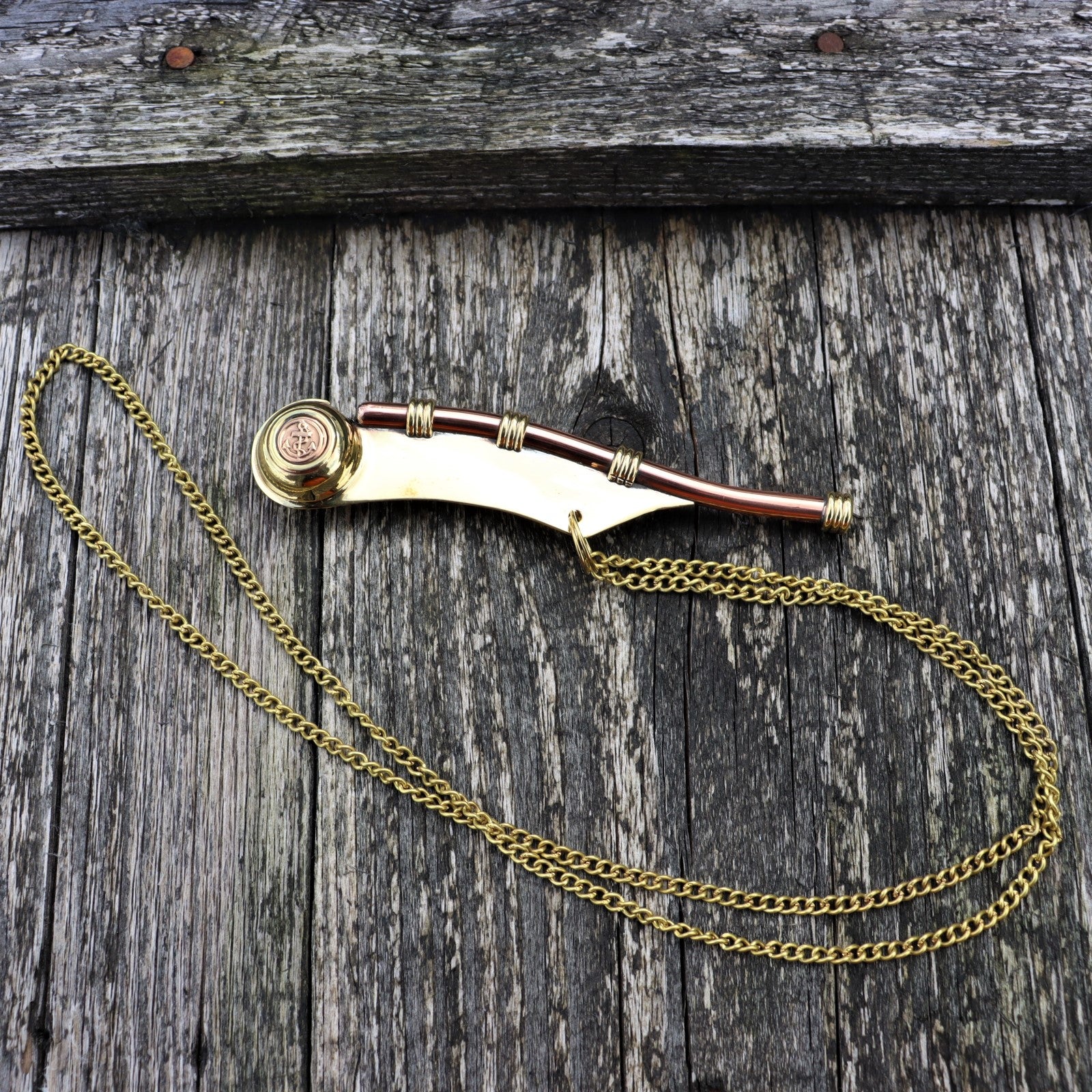 The shape of this classic Bosun's whistle has not changed in five centuries. To man the sails, go aloft, or defend the ship in action, “All hands on deck” was one of the commands blown by the Bosun’s Mates on this whistle or “call”.