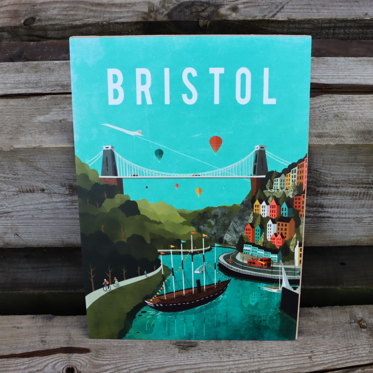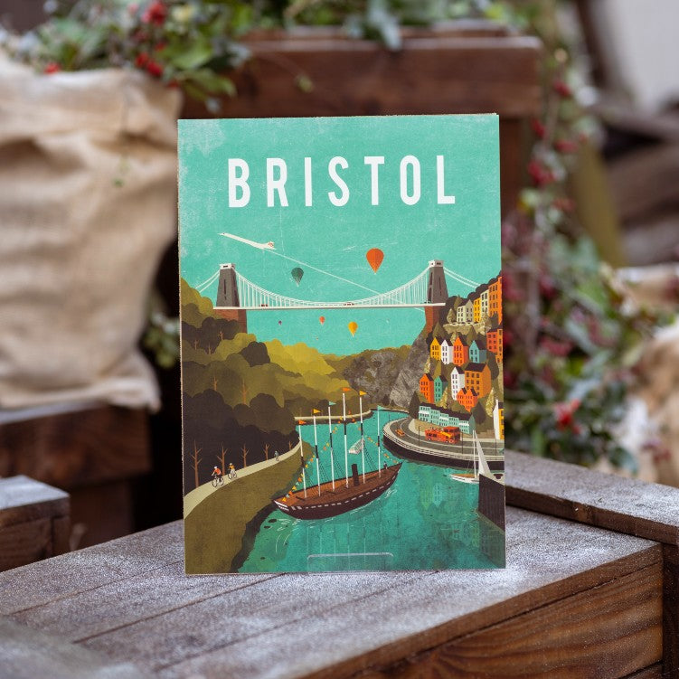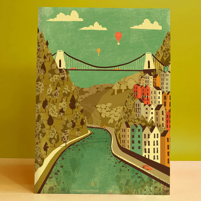 This colourful yet sophisticated print depicts two of Brunel's most famous projects united in one image: the Clifton Suspension Bridge and our very own iron steamship.