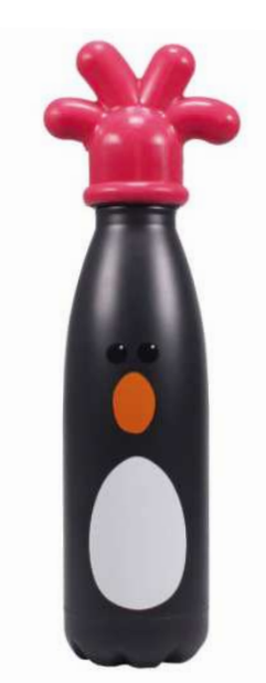 Keep your cold drinks cold and hot drinks hot in this penguin-shaped double walled water bottle! Inspired by Feathers McGraw with a silicone rubber glove hat, this quirky bottle makes a great gift for fans of Wallace and Gromit.