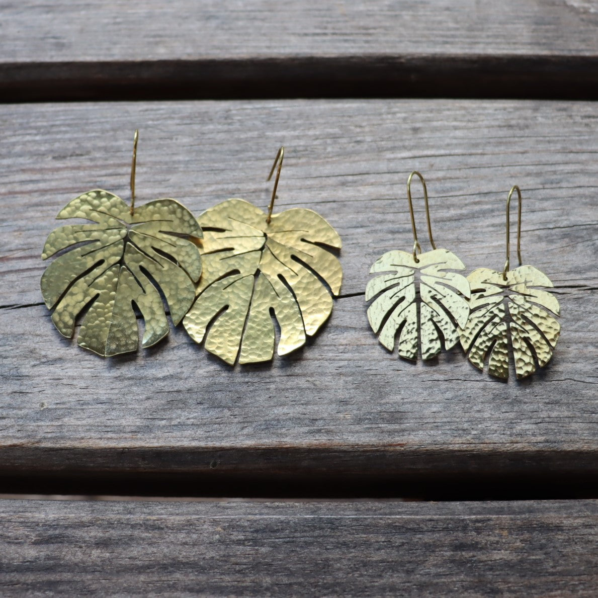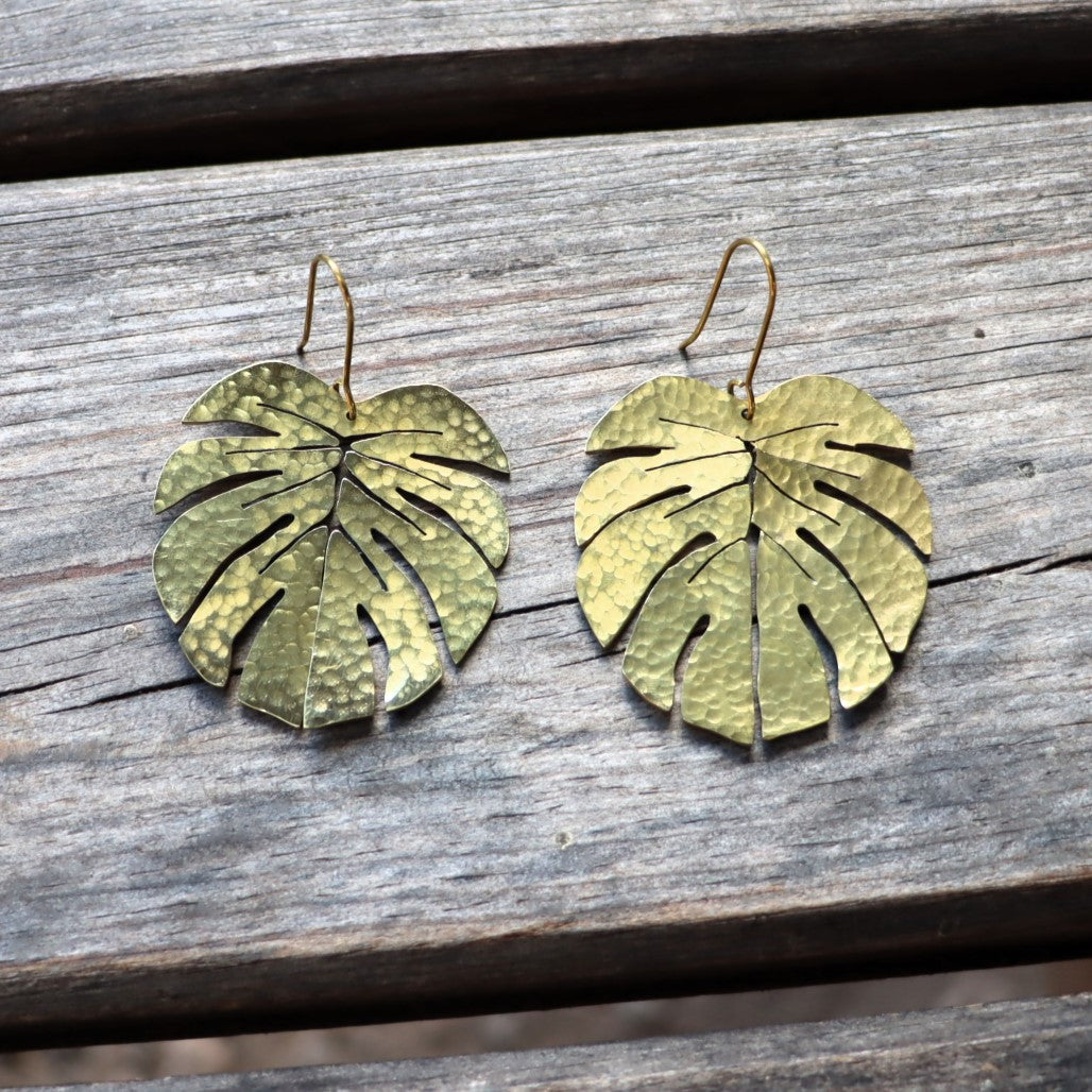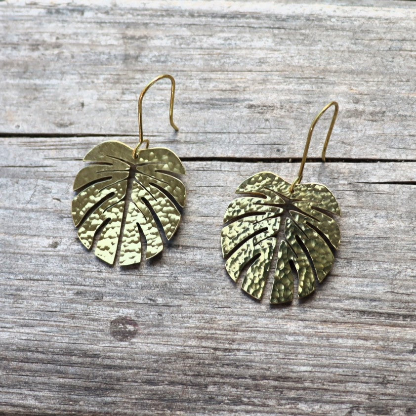 For all botanists and plant lovers - these beautiful hand cut brass earrings resemble Monstera leaves. Each brass shape is cut by hand and then hammered with a specialist tool to give it texture.