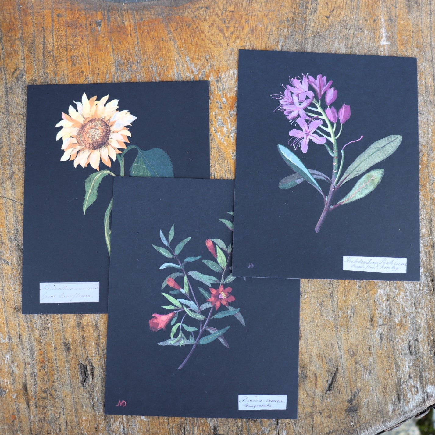 The fine shading and depth are as intricately detailed as a botanical illustration and scientifically accurate as well. Printed on thick, textured paper, the set features sunflowers, rhododendron, cornflower, water lilies, and more.