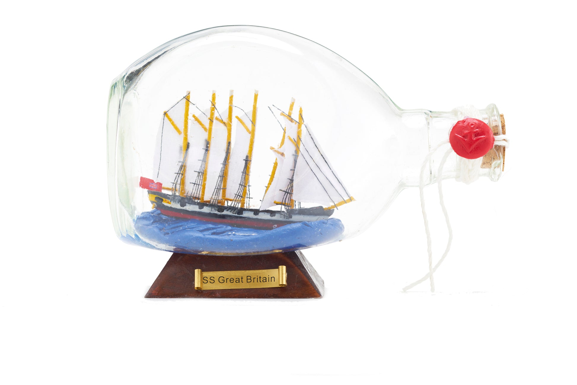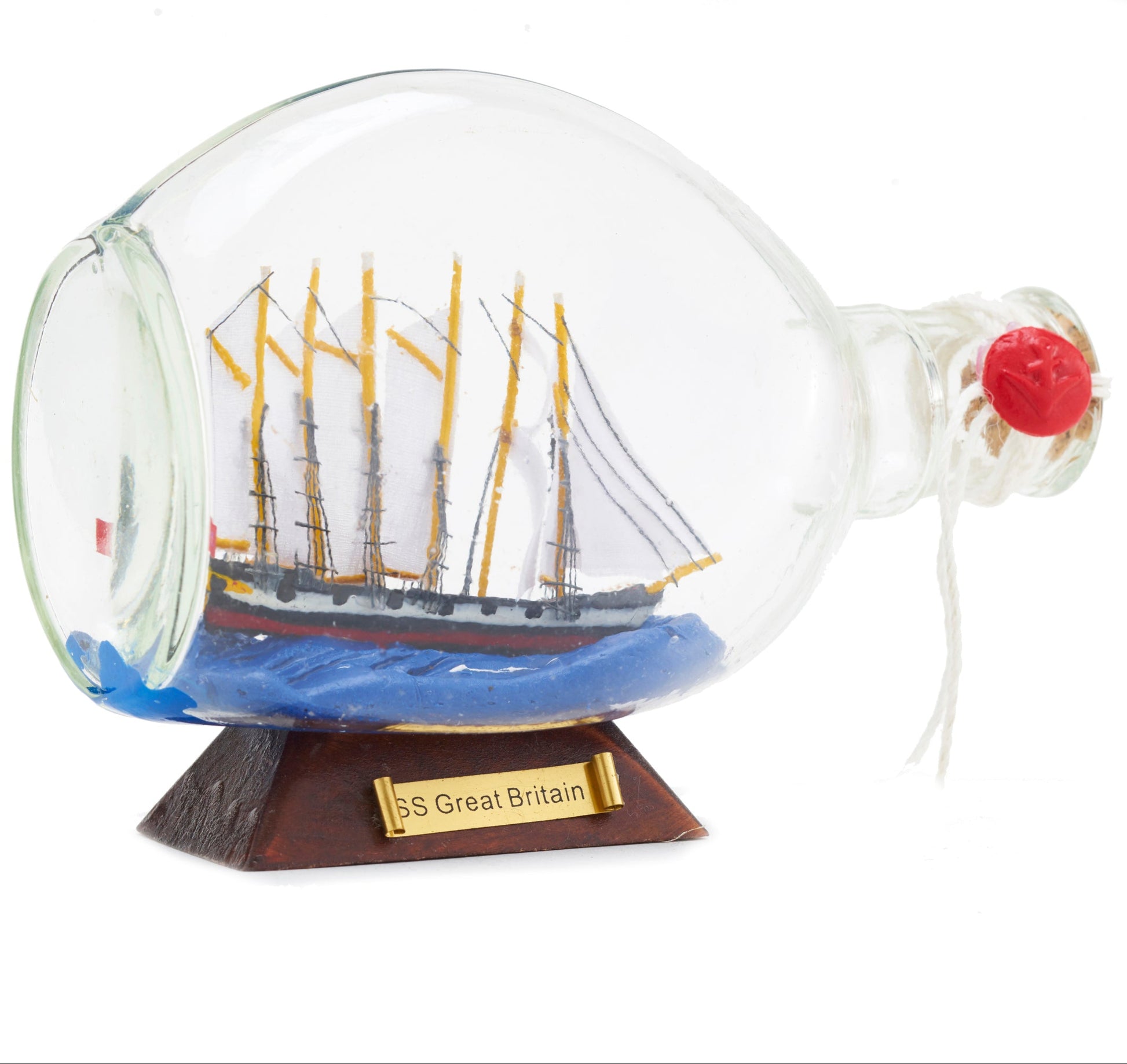 This classic ornament makes a great addition to any mantelpiece or sideboard. This tiny replica of the SS Great Britain is captured in a decorative glass bottle.