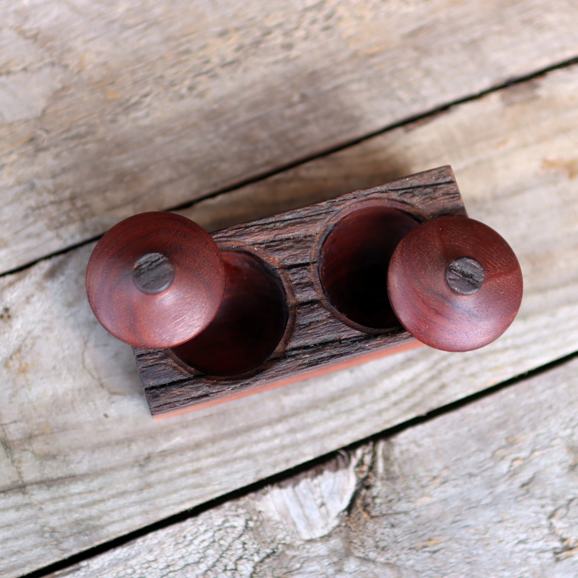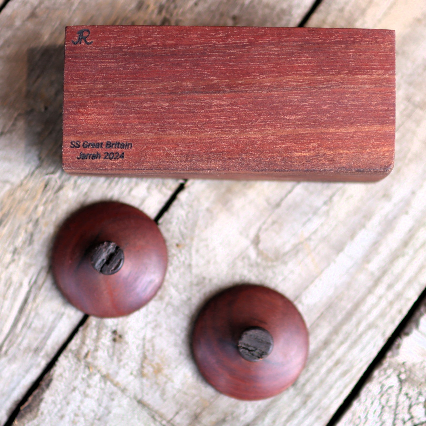 This delightful set of two pots, ideal for storing salt and pepper, is made from the deck wood of the SS Great Britain. This wood, removed during conservation work, formed the top deck of the ship from the 1990s until 2023.