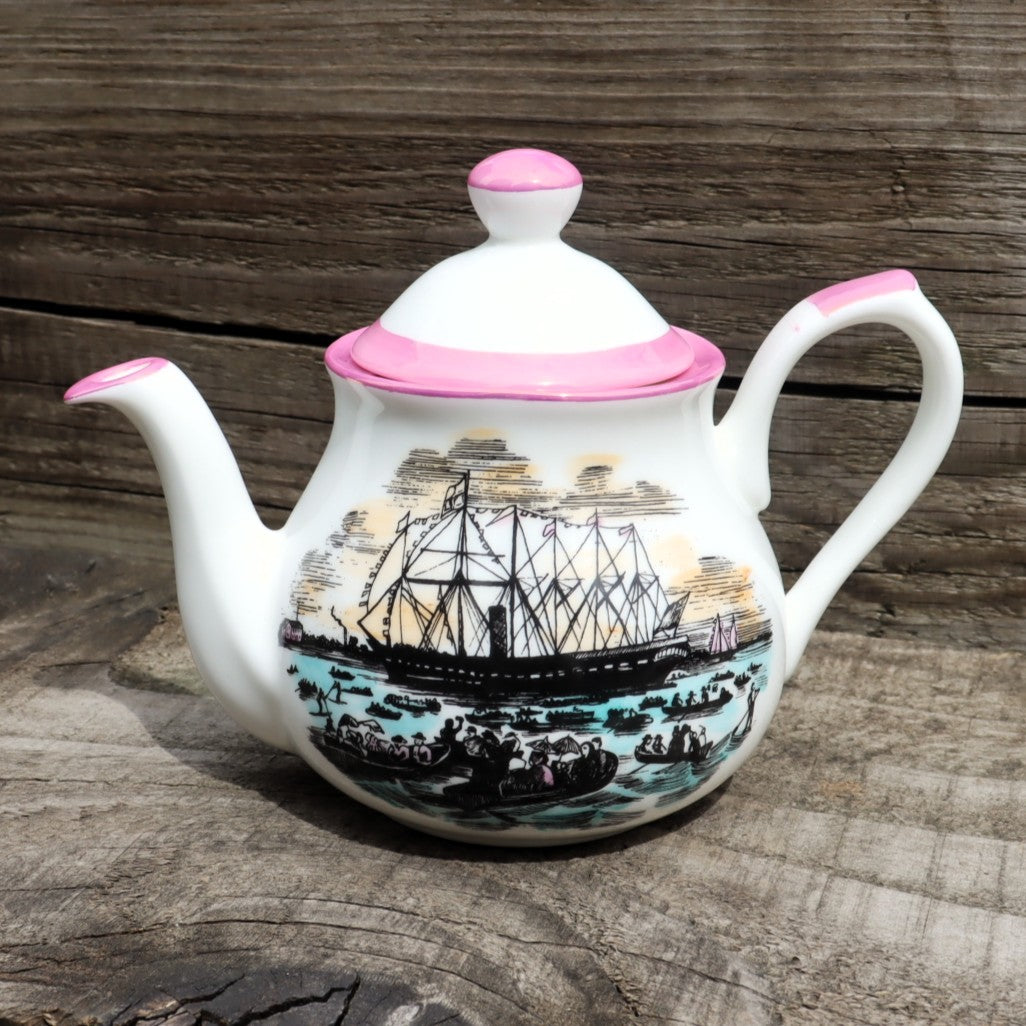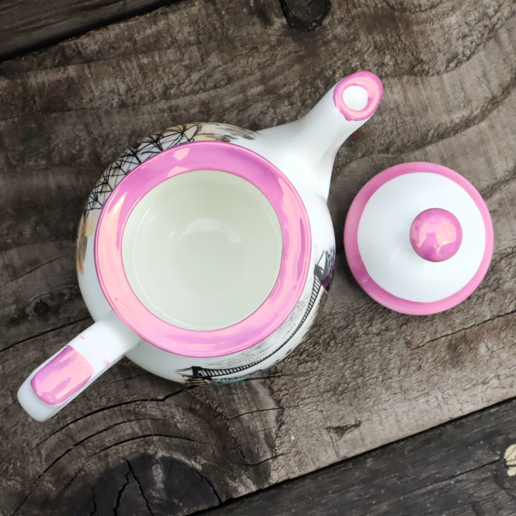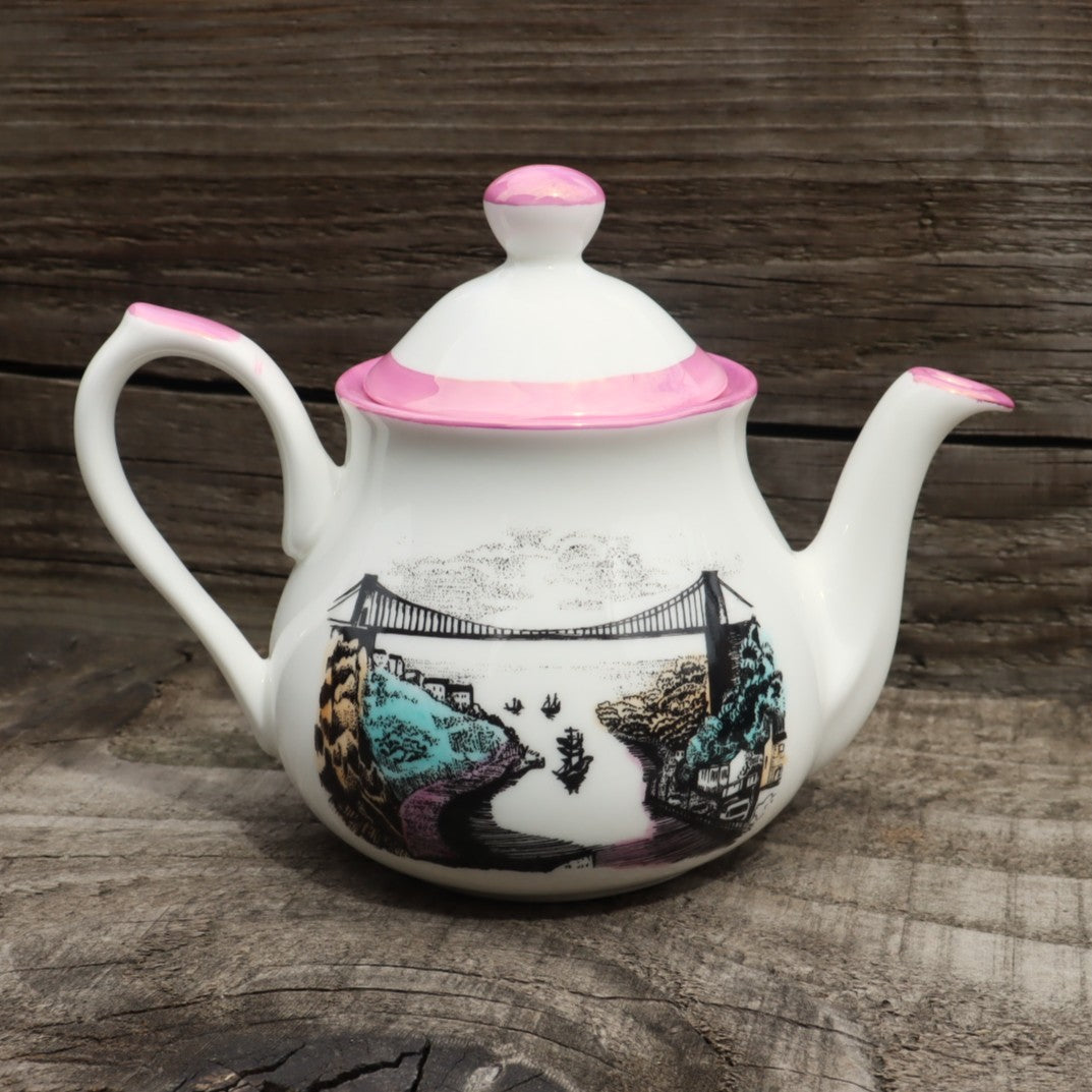 Designed in a collaboration between Bev Milward and the SS Great Britain, these dainty teapots combine archival images from the Illustrated London News with beautiful hand painted copper lustre. Each teapot features an image of the SS Great Britain on one side and the Clifton Suspension Bridge on the other.