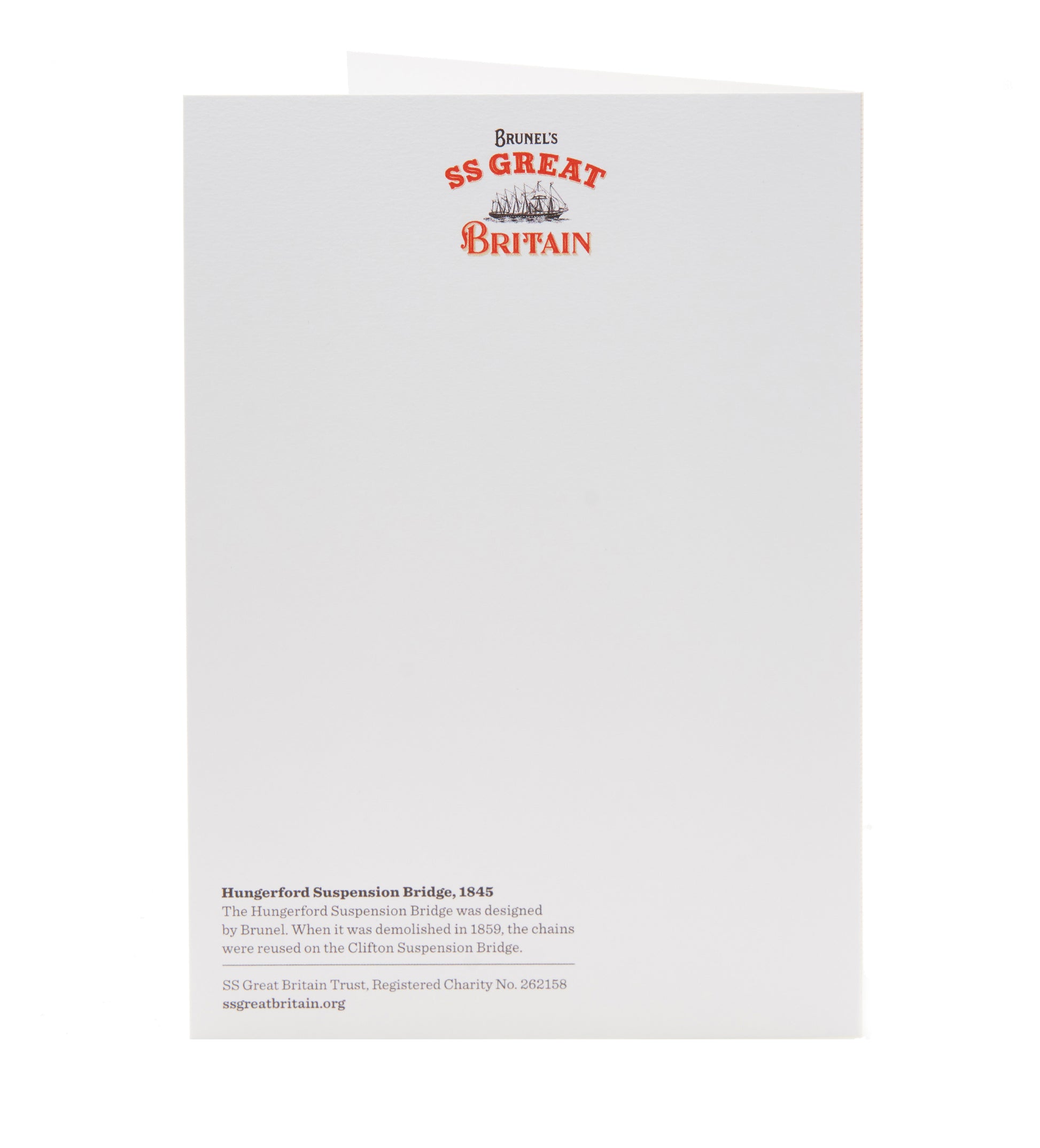 The Hungerford Suspension Bridge was designed by Brunel in 1845. When it was demolished in 1859, the chains were reused on the Clifton Suspension Bridge, Bristol’s most iconic landmark.