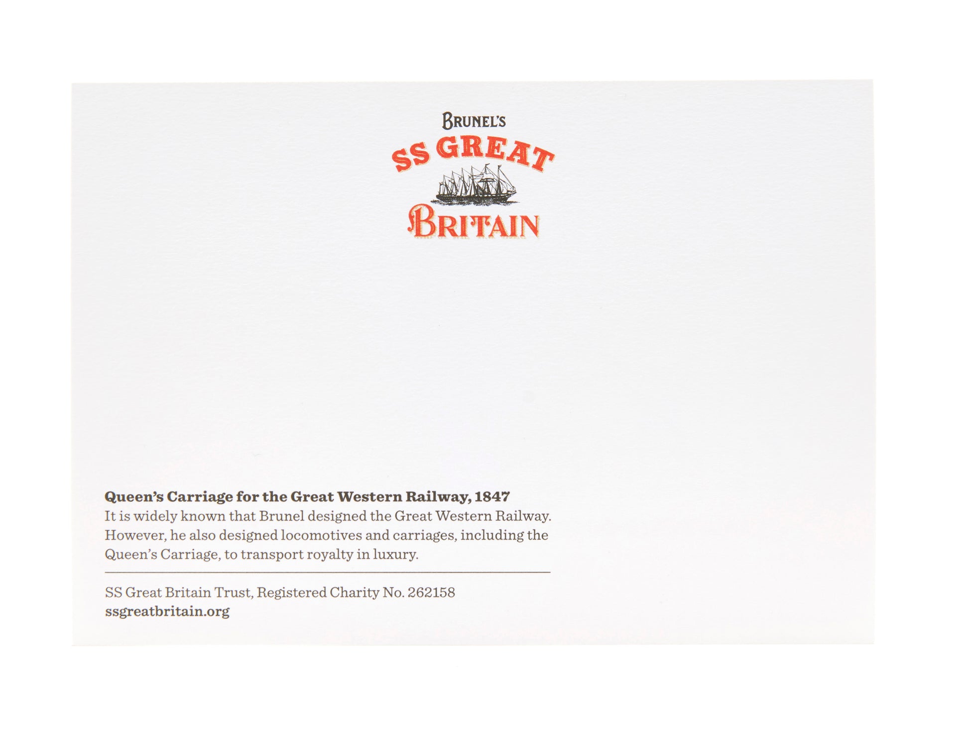 It is widely known that Brunel designed the Great Western Railway. However, many aren’t aware he also designed the Queen's Carriage in 1847 to transport royalty in supreme luxury. Treat yourself or a loved one to this stunning postcard.