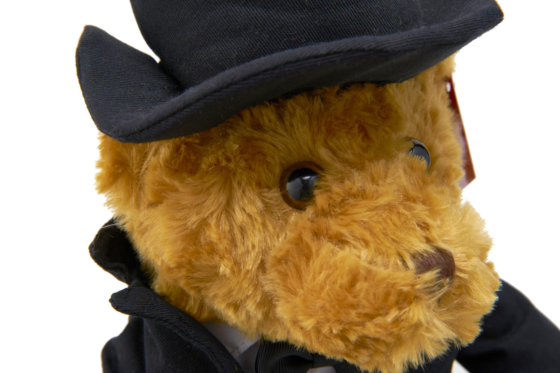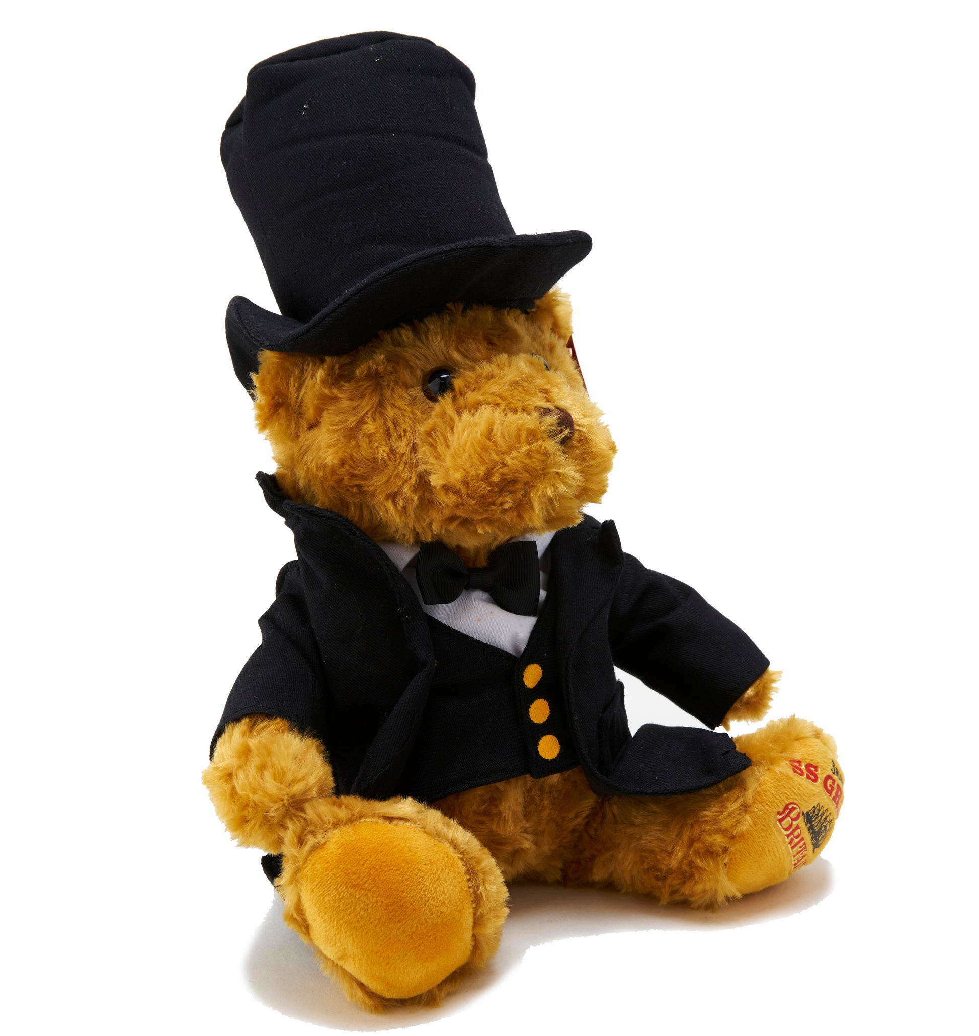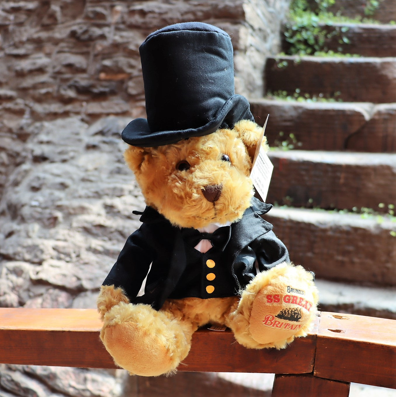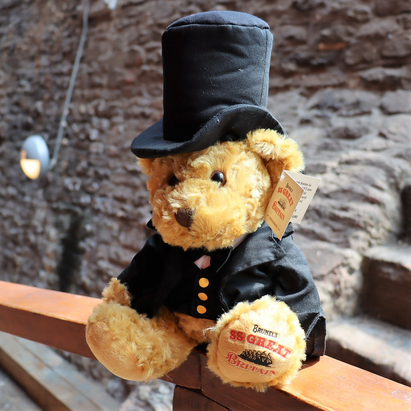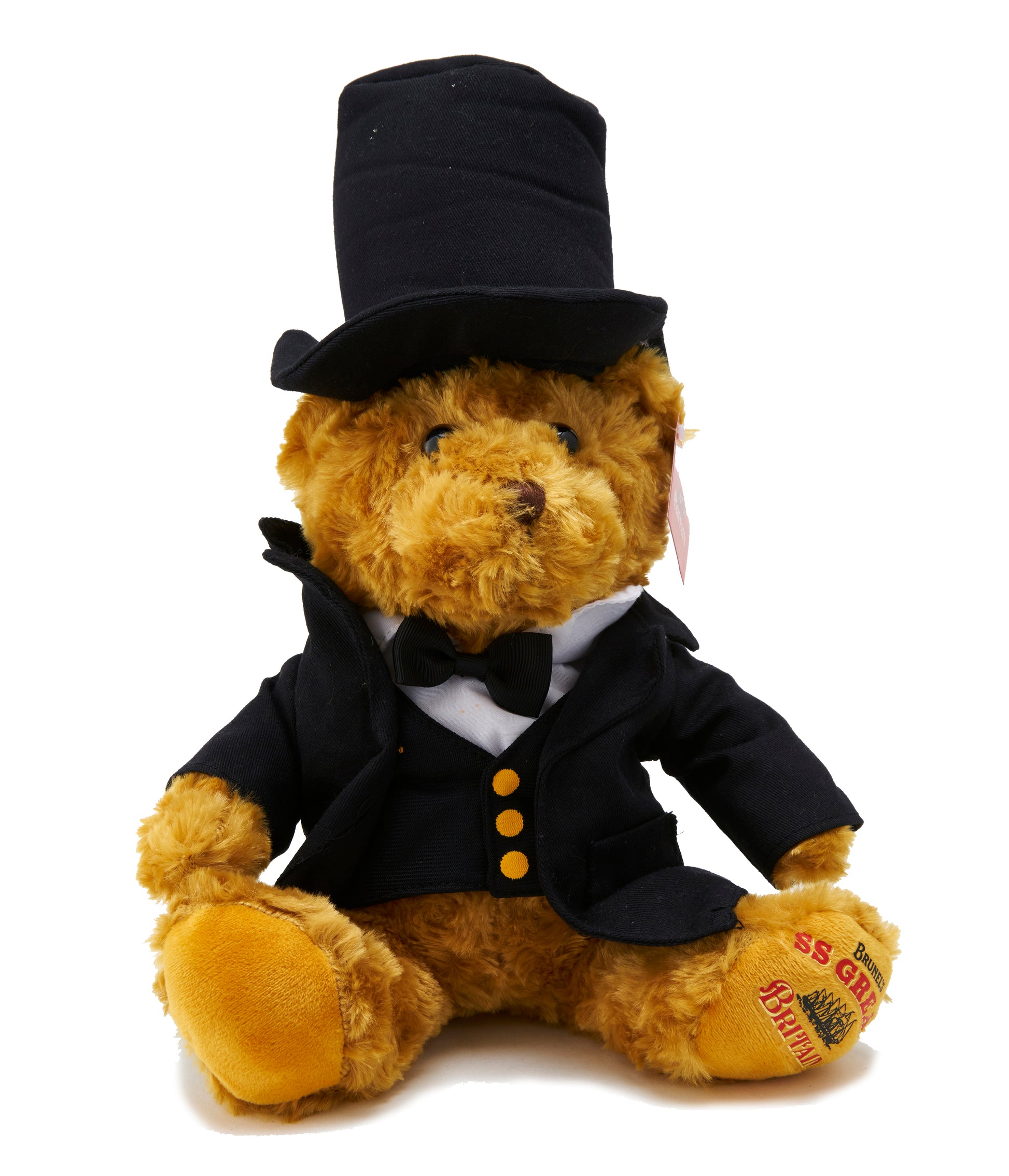 A traditional style, custom-made by Brazier and Co. of Devon, Isambear Kingdom Brunel looks quintessentially English thanks to his stovepipe hat and bow tie.