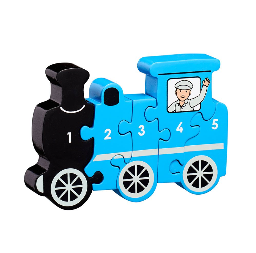 Little ones can learn to count to five and will love slotting the chunky pieces of this puzzle together. Made from wood and painted in bright blue, this mini jigsaw is perfect for young fans of trains!