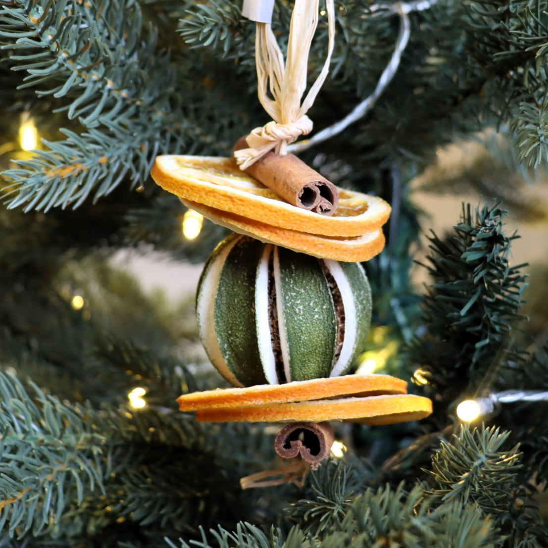 Decorate your home with a nod to rustic Victorian tradition with these natural ornaments made of cinnamon, citrus fruit and pine cones. These individual ornaments will hang on a Christmas tree or anywhere in your home.