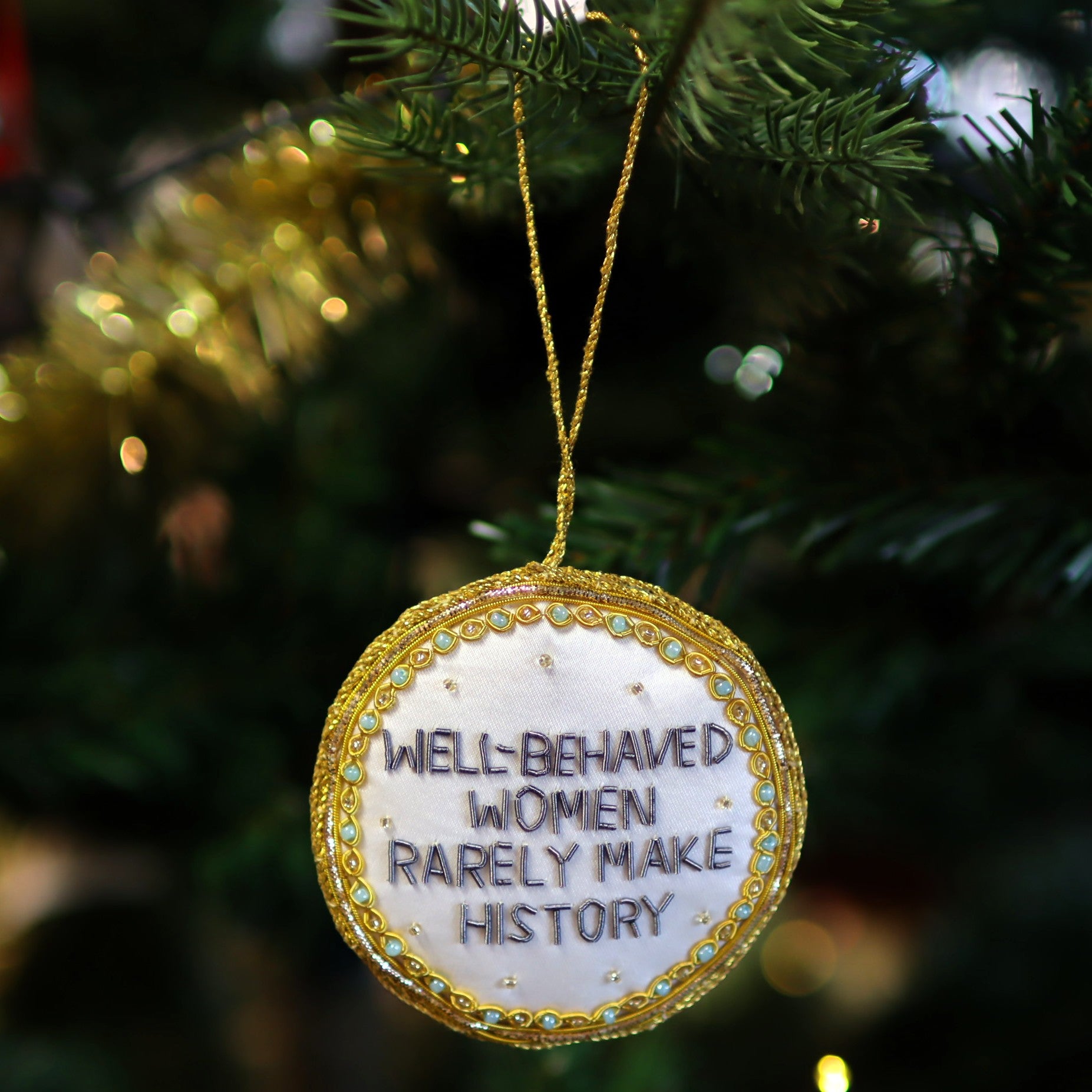 Celebrate not just the festive season, but the disruptive women through history who walked so we can run! This hand-stitched plaque sends an important message, while also adding sparkle to your tree.